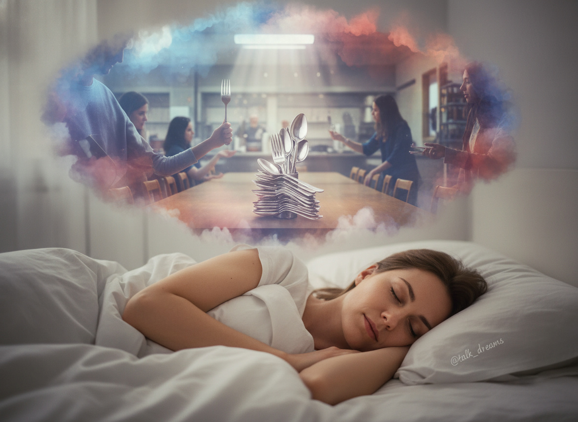 - Столовые приборы — эти символы связывают с поддержкой и удовлетворением базовых потребностей. Отсутствие нужных приборов может говорить о страхе утраты чего-то ценного или требовать большей заботы о ресурсах.