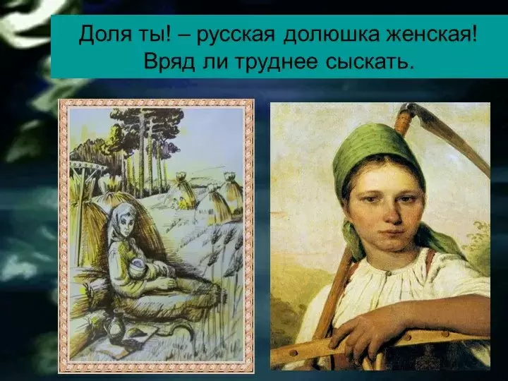 Исторически, выходя замуж, женщины переходили из состояния «девичья воля» в «женская доля», что подразумевало не только изменение обязанностей, но и некую жертву. Слова «доля» и «участь» постоянно ассоциировались с безысходностью, и это отображает реальность многих женщин тех времён, когда выбор был минимален, зачастую зависел от старших, будь то родители или община.