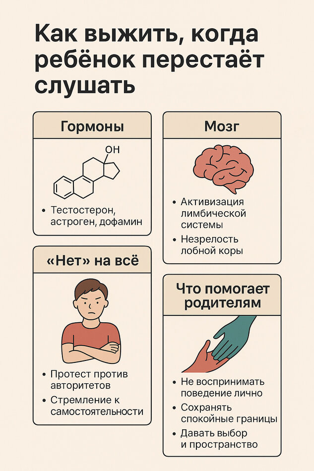 Гормональная перестройка активирует вещества, такие как тестостерон и эстроген, что меняет функционирование мозга. Лимбическая система, отвечающая за эмоции, начинает работать с большей интенсивностью, в то время как лобная кора, отвечающая за планирование и контроль, все еще находится в процессе созревания. Это приводит к тому, что подросток ощущает эмоции гораздо ярче, но осознанно контролировать их ему порой сложно.